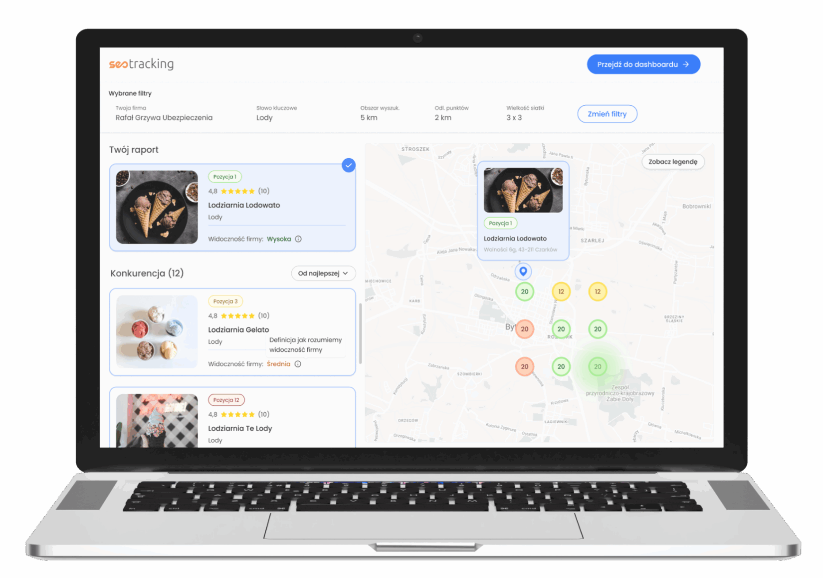 Aplikacja – pomoże Ci w prosty sposób zarządzać wizytówką w Google oraz wygeneruje czytelny raport, na którym miejscu wyświetla się Twoja firma w okolicy.