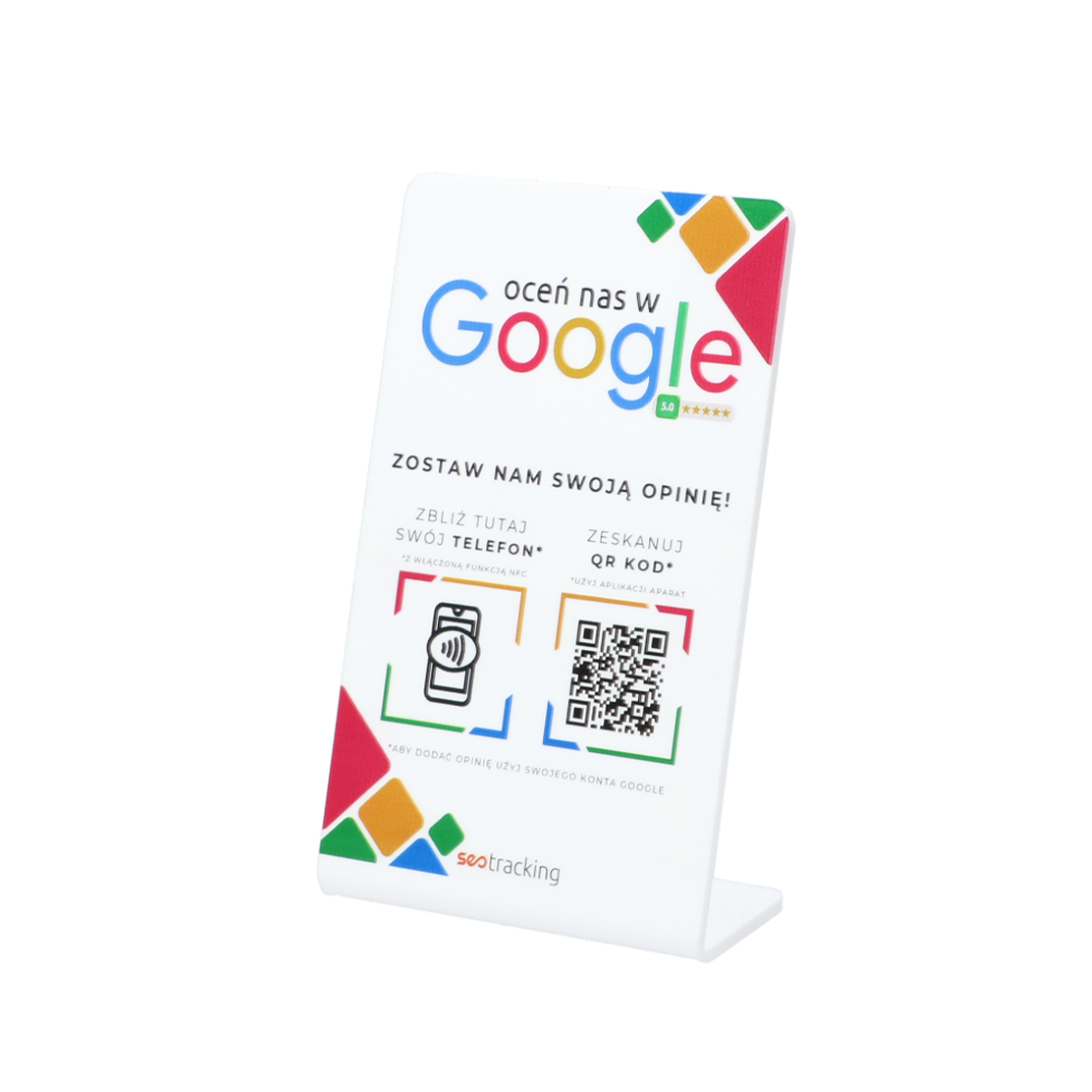 Prezenter SEOtracking® Universal to nowoczesne narzędzie, które pozwala Twoim klientom błyskawicznie wystawić opinię – wystarczy zbliżyć telefon lub zeskanować kod QR – i gotowe!
